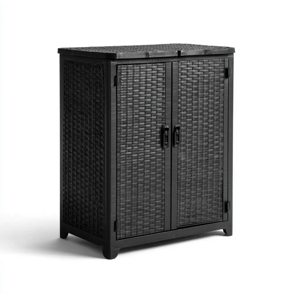 Armoire de rangement extérieure en résine tressée 80x45x100 cm - Noir